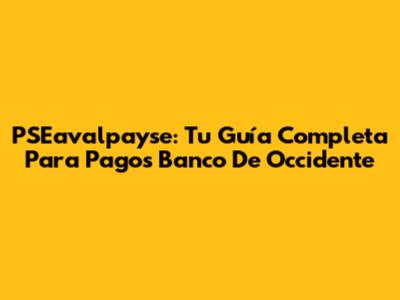 PSEavalpayse: Tu Guía Completa Para Pagos Banco De Occidente
