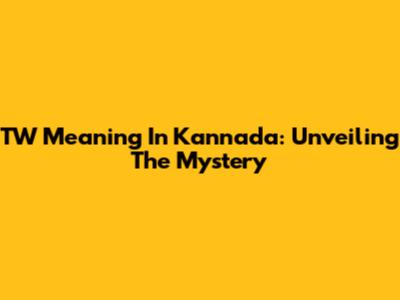 TW Meaning In Kannada: Unveiling The Mystery
