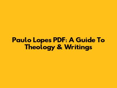 Paulo Lopes PDF: A Guide To Theology & Writings