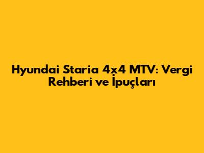 Hyundai Staria 4x4 MTV: Vergi Rehberi Ve İpuçları