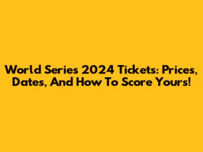 World Series 2024 Tickets: Prices, Dates, And How To Score Yours!