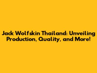Hey guys! Ever wondered about the journey of your favorite Jack Wolfskin gear? Well, let's dive deep into the world of Jack Wolfskin made in Thailand, exploring everything from production processes and quality control to the brand's presence in the region. We're going to break down the ins and outs, giving you a comprehensive look at how this iconic outdoor brand crafts its products in Thailand. Get ready for an informative and exciting journey, covering everything you need to know about Jack Wolfskin and its operations in the Land of Smiles!