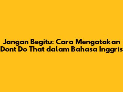 Hai guys! Pernahkah kalian berada dalam situasi di mana kalian ingin memberi tahu seseorang untuk berhenti melakukan sesuatu? Nah, dalam bahasa Indonesia, kita sering menggunakan frasa "Jangan begitu". Tapi, bagaimana cara mengatakannya dalam bahasa Inggris? Tenang, artikel ini akan membahas tuntas tentang bagaimana cara mengungkapkan "Jangan begitu" dalam bahasa Inggris, lengkap dengan contoh penggunaan dan tips agar percakapan kalian lebih lancar. Jadi, simak terus ya!