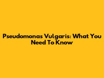 Pseudomonas Vulgaris: What You Need To Know
