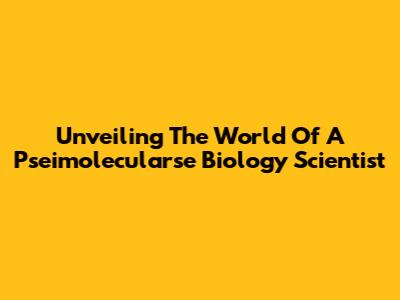 Unveiling The World Of A Pseimolecularse Biology Scientist