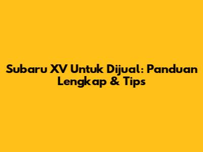 Subaru XV Untuk Dijual: Panduan Lengkap & Tips