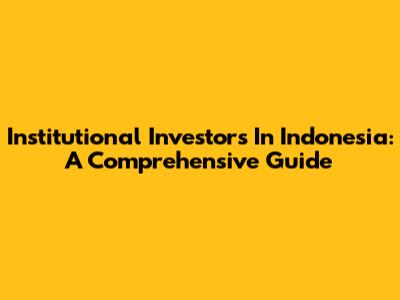 Institutional Investors In Indonesia: A Comprehensive Guide