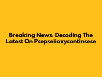 Breaking News: Decoding The Latest On Psepseiioxycontinsese