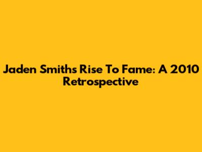 Jaden Smith's Rise To Fame: A 2010 Retrospective