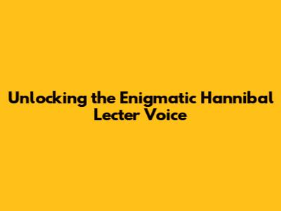 Hey guys! Ever been captivated by a voice so chilling, so intelligent, and so utterly unforgettable that it sends shivers down your spine? Well, if you're a fan of the psychological thriller genre, chances are you've been mesmerized by the voice of Hannibal Lecter. This article will be your comprehensive guide to understanding and, if you're up for it, even emulating the iconic Hannibal Lecter voice. We'll dive deep into the nuances that make it so distinctive, the techniques used to create it, and even some fun facts about the actors who've brought this terrifyingly brilliant character to life. So, buckle up, grab your favorite Chianti (or a non-alcoholic beverage, no judgment!), and let's explore the chilling world of the Hannibal Lecter voice!