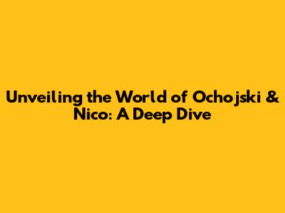 Hey everyone! Ever heard the names Ochojski and Nico? If you're a fan of [insert relevant field, e.g., the tech industry, a specific sport, or a creative field], chances are you've come across these names. Today, we're diving deep into their world to uncover what makes them tick and why they've garnered so much attention. Get ready for a fun ride filled with insights, stories, and a closer look at the folks behind the names. We'll explore their backgrounds, achievements, and what's on the horizon. This isn't just about listing facts; it's about understanding the people and the impact they're making. Buckle up, because we're about to explore the world of Ochojski and Nico like never before!