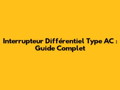 Interrupteur Différentiel Type AC : Guide Complet